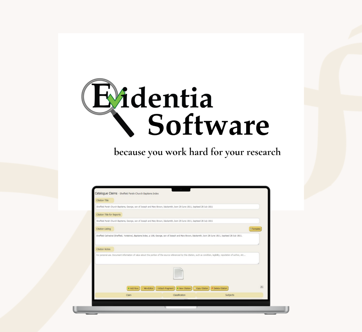 Evidentia is designed for genealogists who prioritize accuracy and evidence-based conclusions, offering a structured, source-centric system for documenting research, analyzing information, and evaluating conflicting data. It keeps every piece of evidence organized so you can reach clear, defensible findings with confidence.