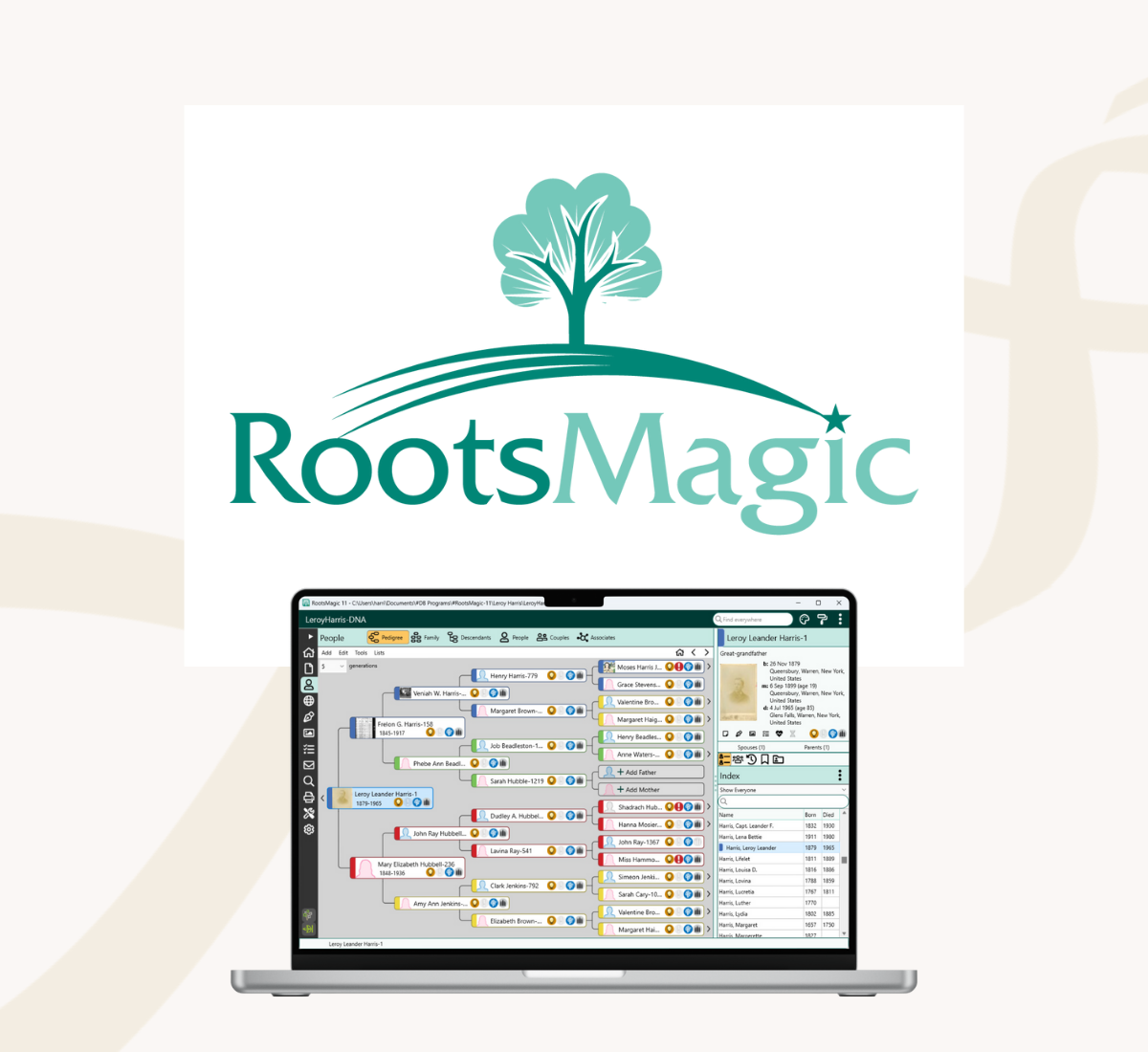 RootsMagic 11 is powerful, intuitive genealogy software designed to help you build, organize, and preserve your family tree with confidence. With smart editing tools, clean navigation, and seamless connections to major record sites, it keeps your research grounded while making discovery effortless.