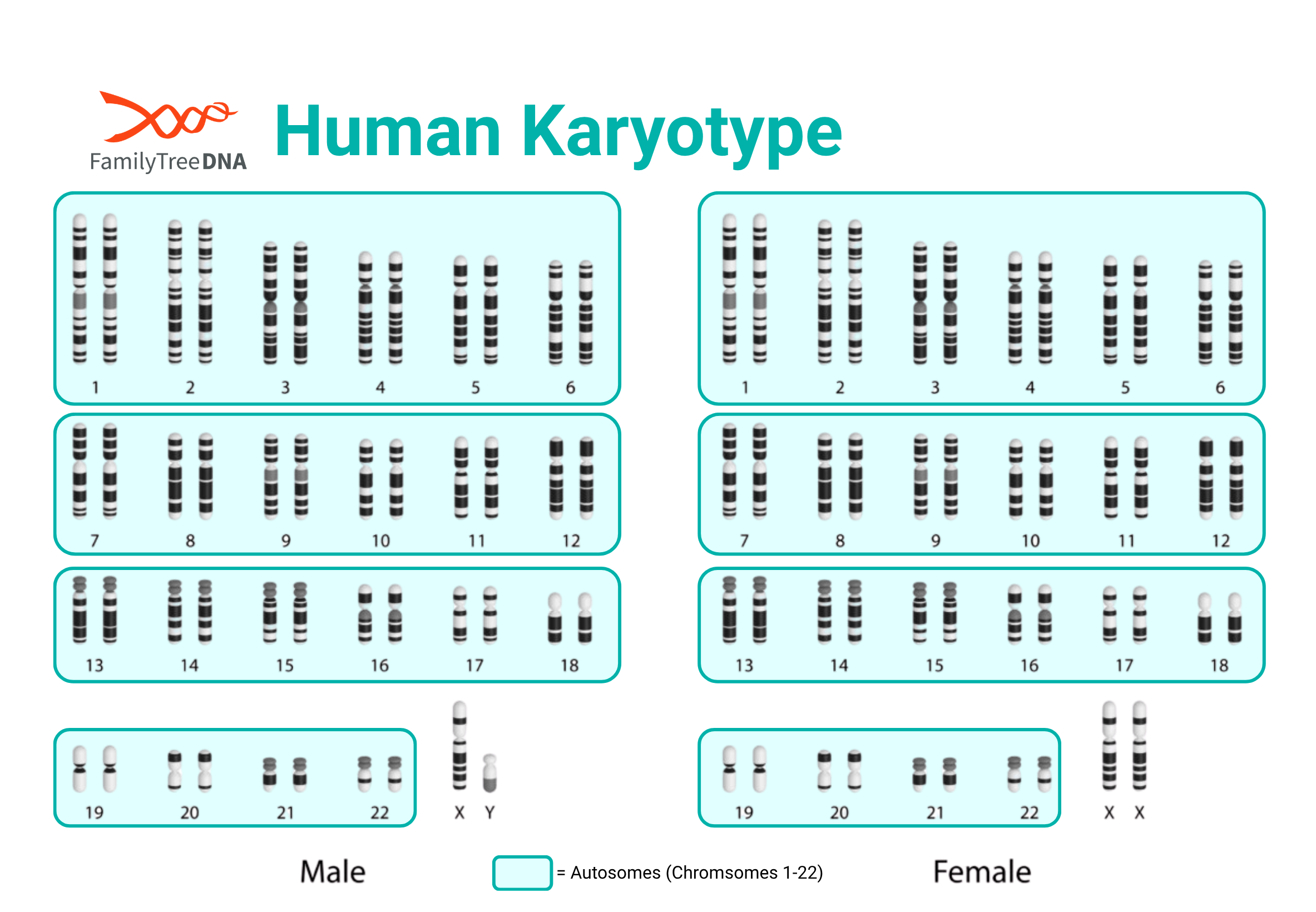 Autosomal DNA refers to the 22 pairs of autosomes (chromosomes 1-22) that you inherit from your parents. Most autosomal DNA tests also include the X chromosome. Everyone inherits half of their autosomal DNA from their father and half from mother.
