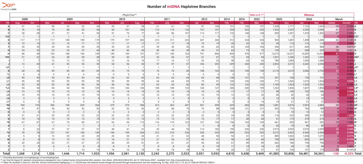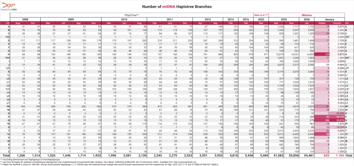 We’ll continue sharing mtDNA tree highlights and updates across our channels, but this page will always serve as the central resource for the most up-to-date information about the mtDNA haplotree.