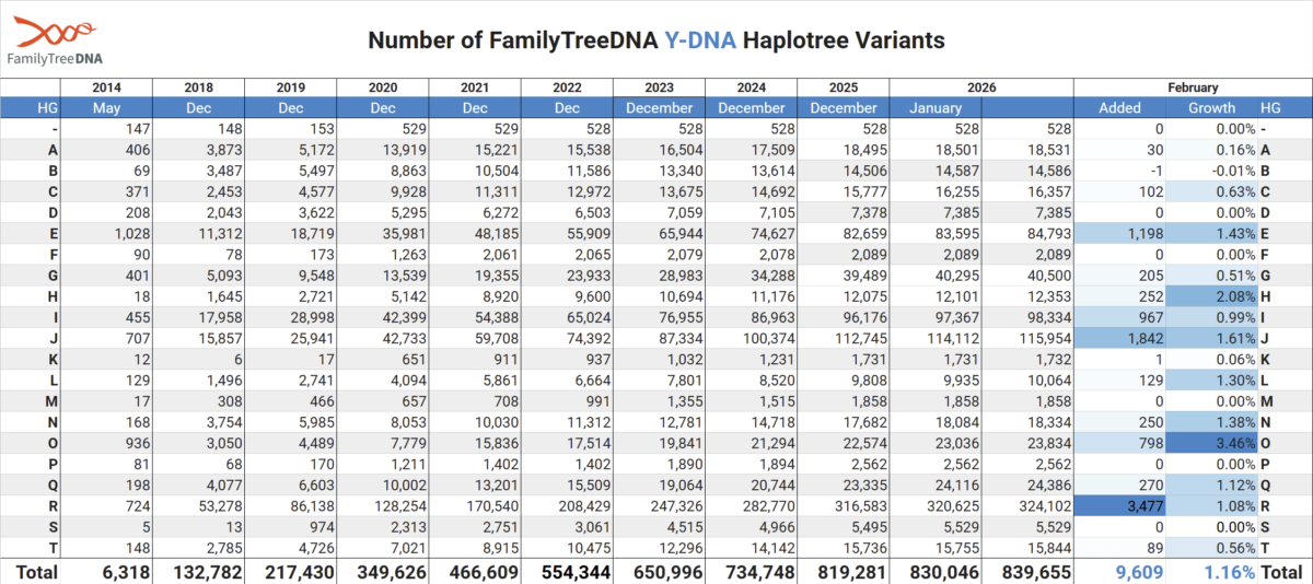 - Haplogroup R: +3,477 variants (largest numerical growth)