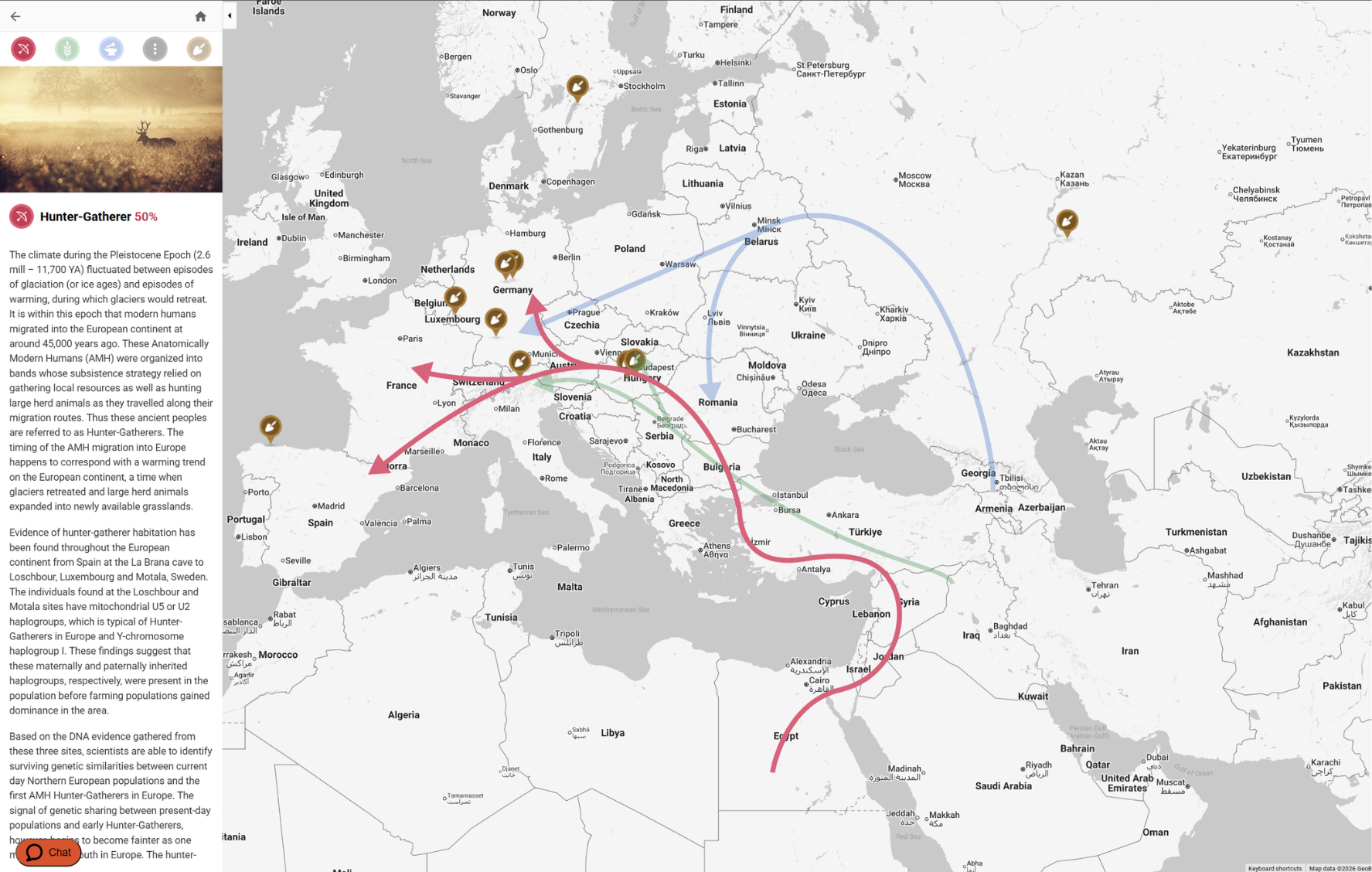 - Population details: Selecting a population allows you to view additional information about that group, including geographic and historical context.