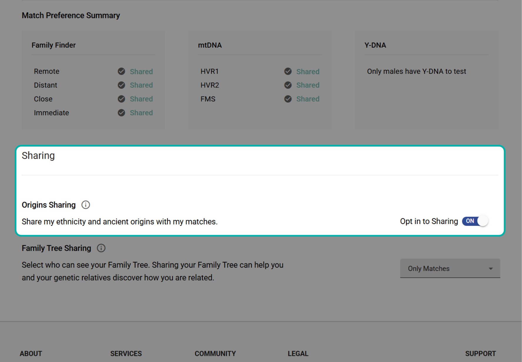 Go to Privacy & Sharing in your account and enable Origins Sharing to compare your results with matches who have also opted in.
